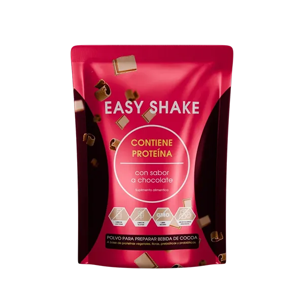 Easy Shake es una mezcla en polvo lista para preparar. Contiene proteínas de origen vegetal, cacao, fibra de manzana y amaranto. Puede formar parte de una rutina diaria equilibrada.